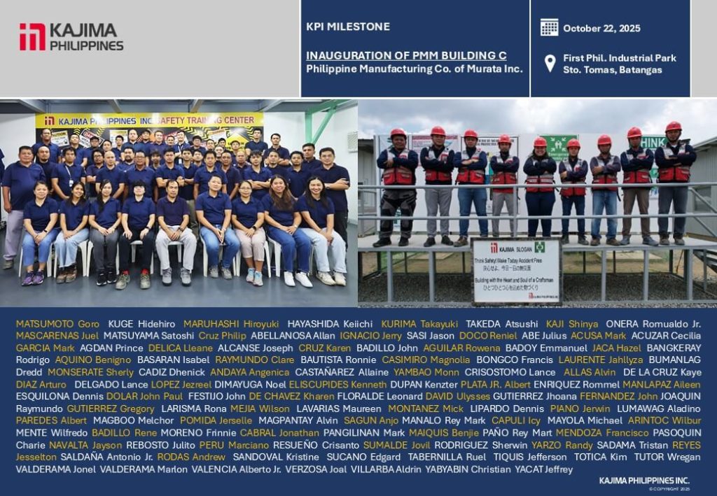 Kajima Philippines is honored to have completed another manufacturing facility for one of our longstanding clients, having built majority of their facilities in the Philippines over the years.